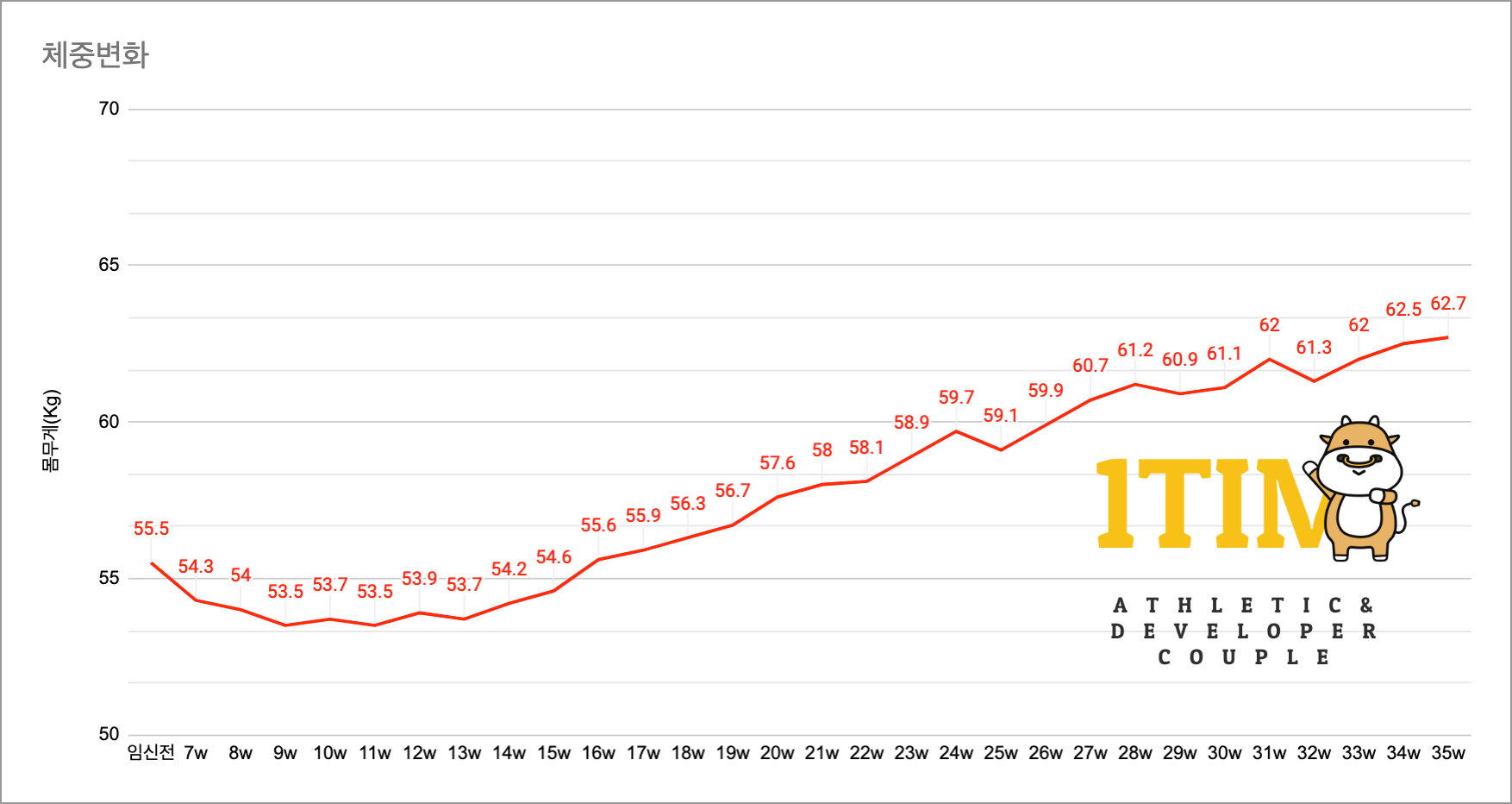 체중 변화 - 임신전 대비 7kg 돌파..