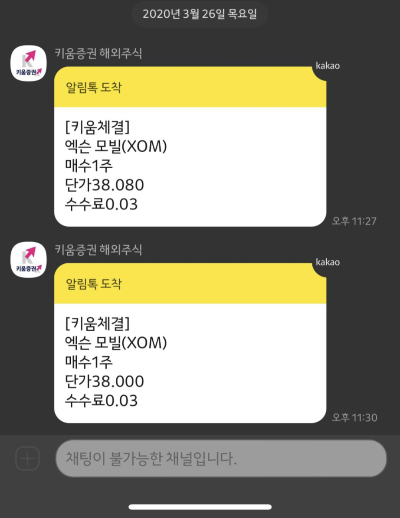 어제는 그나마 상승폭이 적은 엑슨모빌(XOM)을 2주 매수 했다.